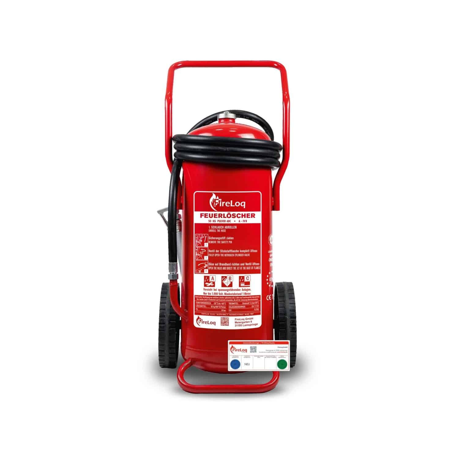 FAQ – Häufig gestellte Fragen zu FireLoq 50kg Pulver fahrbarer Auflade Löschwagen Prüfnachweis Wandhalter