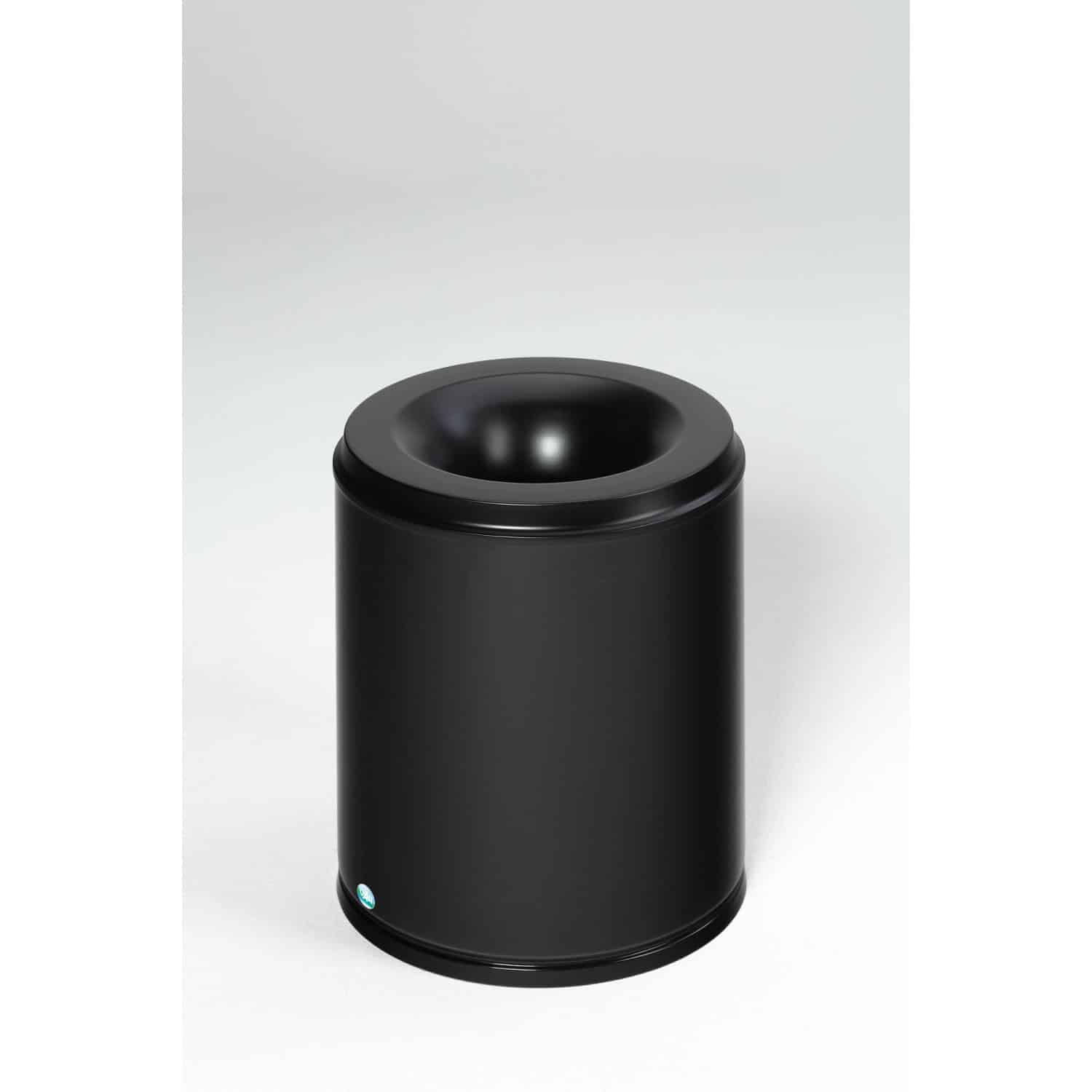 Der Korpus des Papierkorbs ist aus robustem, verzinktem Stahl gefertigt. Die äußere Oberfläche ist zusätzlich mit einer widerstandsfähigen Pulverbeschichtung in Schwarz versehen, die für Langlebigkeit und eine ansprechende Optik sorgt.
